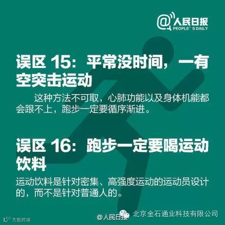 平时工作没时间,周末就要使劲锻炼?只要跑了就能减肥?运动量越大越有效?跑一次远的比跑短的好?跑步一定要喝运动饮料?……这些你以为正确的跑步观念,其实都是错的!16个跑步误区,跑友们赶紧自测掌握正确方法,让锻炼更有效!