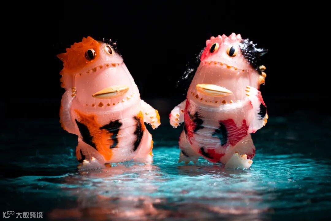 “大兽异志”系列依旧选择做SOFUBI玩具,它们的材质主要是“软胶”(搪胶、Soft Vinyl),部分是用搪胶炉以火烧的形式制成,而本次锦鲤哥是鹅采用油炉工艺制作,胶件会更透彻。