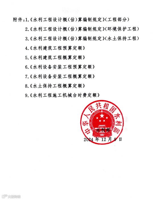 附:水利部关于发布《水利工程设计概(估)算编制规定》及水利工程系列定额的通知(水总[2024]323号)