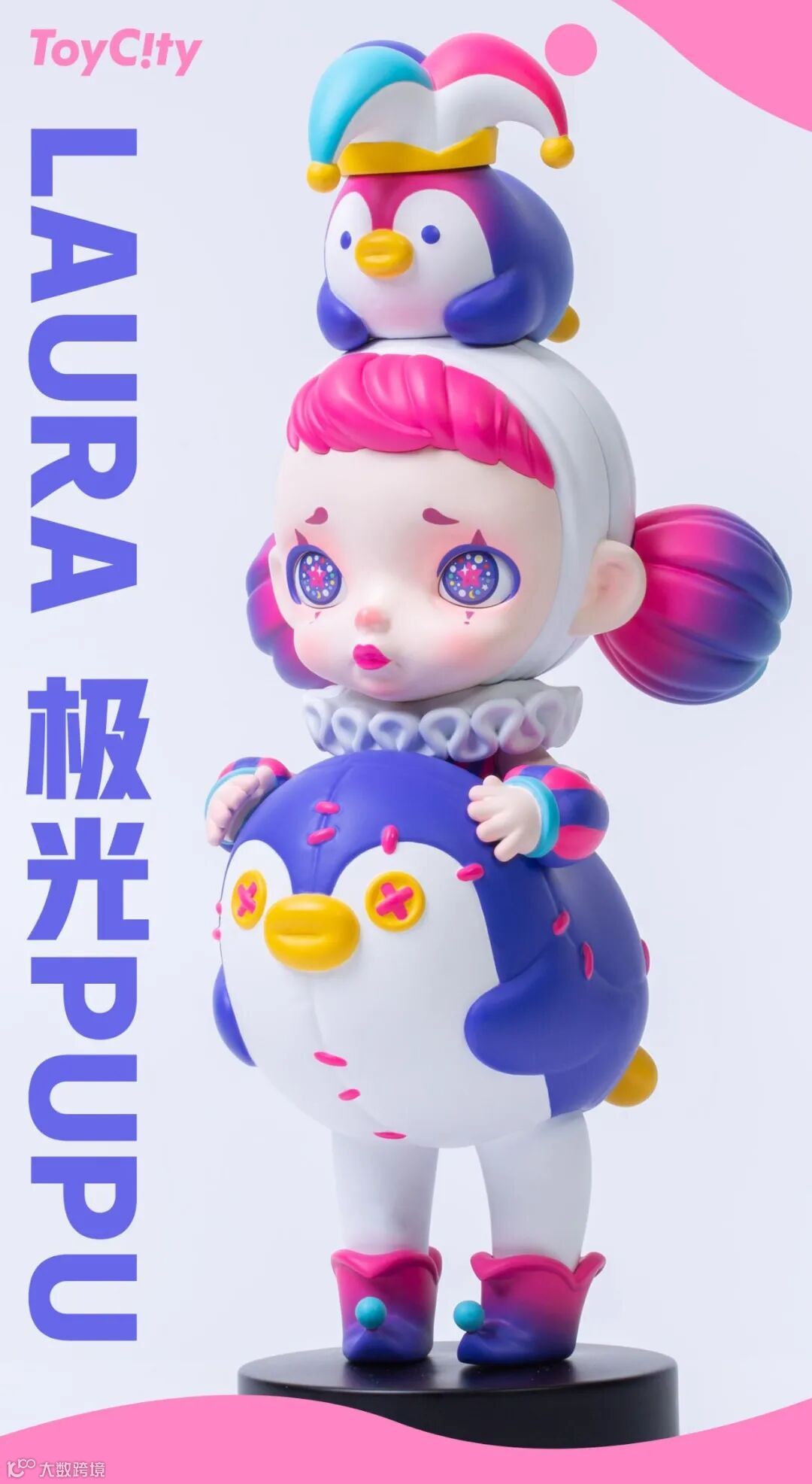 他的名字叫“PUPU LIM”,是由 LTNC STUDIO 和腾讯 ISUX 团队联合开发设计的限量潮玩,这款潮玩的主题延续了双方的联名盲盒,融入了一些街头元素。 在可玩性上将PUPU的小企鹅用磁吸的方式放在了LIM的头上,看上去又萌又潮。产品材质/参数/尺寸:PVC / ABS的,高度15CM。全球限量220体。