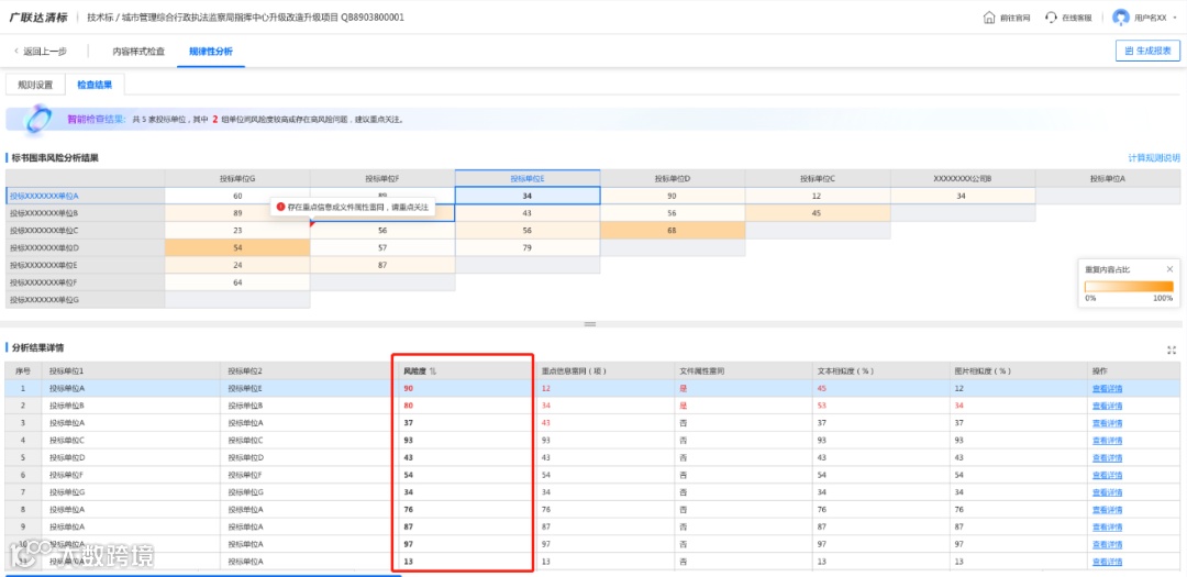 AI解析招标评审要求,自动识别暗标、响应性规则,查重自动排除招标一致内容。