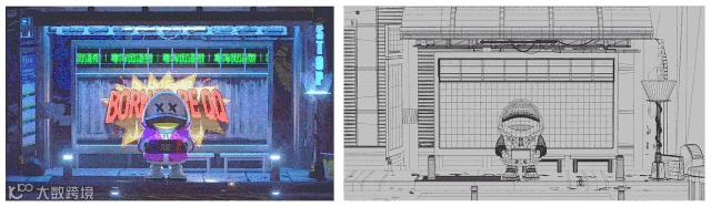 在三维动画风格定位上面,最初的想法是赛博朋克风格,但是考虑到整个潮玩项目的视觉调性是更偏街头与中国风,因此最终将风格定为赛博朋克+复古街头风格,然后弱化了过于科幻的元素。