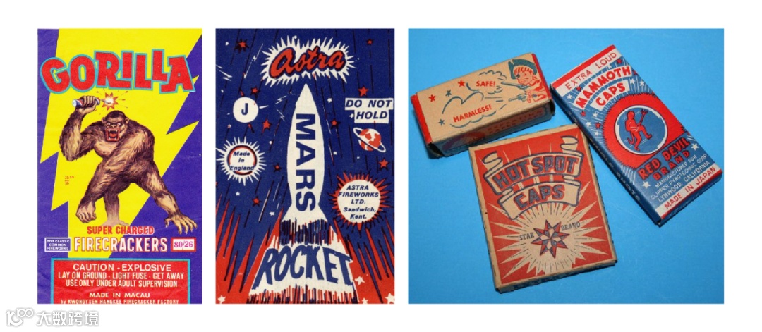 当人们谈论到国潮元素,总会想到中国古风、旧式包装盒、复古海报等,本次产品的包装沿用了复古风的设计理念,从怀旧物中提取元素。包装盒的整体视觉风格从小时候玩的鞭炮盒子汲取灵感,瞬间勾起童年的快乐记忆,并以爆炸式的形状暗示“开盒即惊喜”。