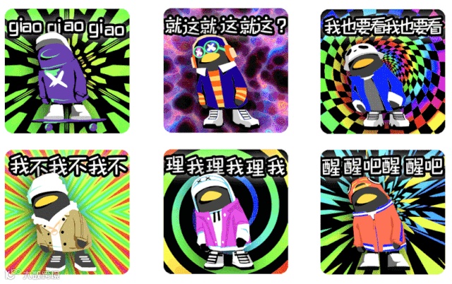 潮流形象,加上充满魔性的动作、背景和关键词,一套鬼畜的表情包完成了天生企鹅系列运营中强内容环节,通过网络社交与观众建立情感联结。