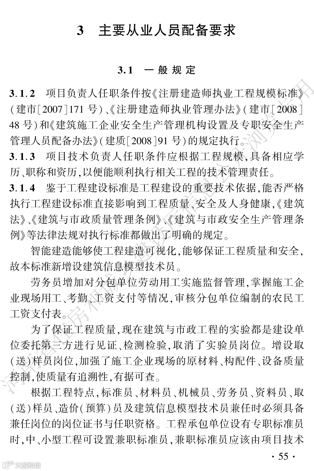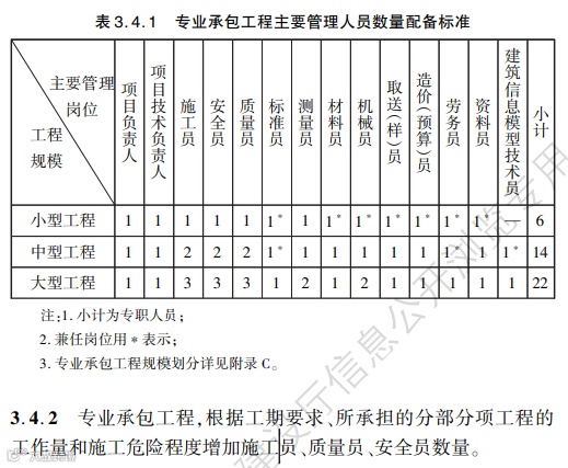 3.1.1建筑与市政工程施工企业现场主要管理人员应包括项目负责人、项目技术负责人、施工员、质量员、安全员、标准员、材料员、机械员、劳务员、资料员、测量员、取(送)样员、造价(预算)员及建筑信息模型技术员等。