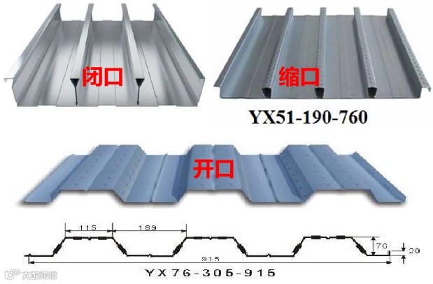 钢混凝土组合楼板(压型钢板),又称为楼承板、承重板、楼盖板、钢承板,是指压型钢板不仅作为混凝土楼板的永久性模板,而且作为楼板的下部受力钢筋参与楼板的受力计算,与混凝土一起共同工作形成组合楼板。