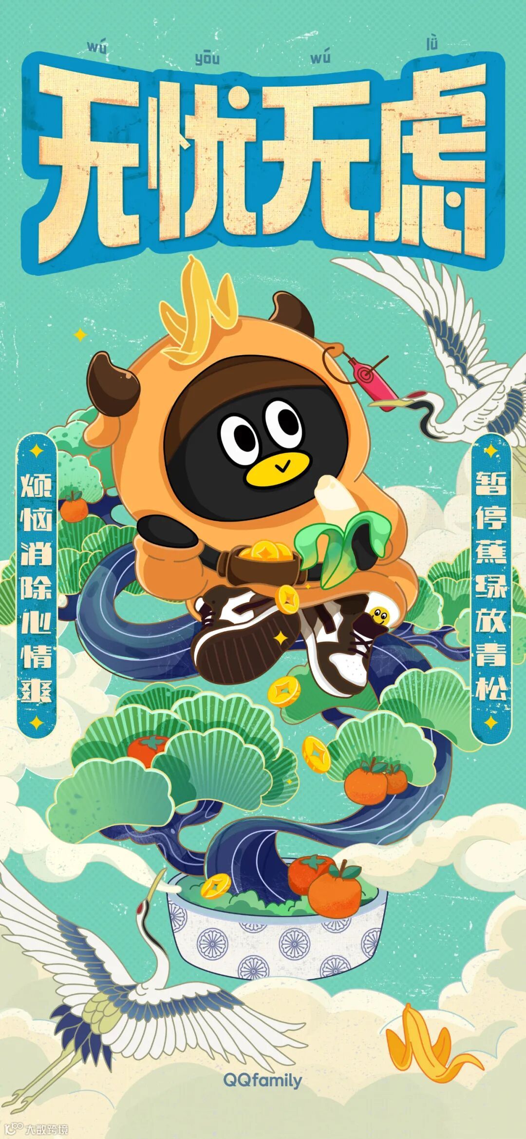 这套QQ牛年的形象也服务了QQ平台的新年热点运营。我们根据不同的角色属性和特质来构思与新年相契合的主题,传达祝福的同时,希望将QQ的IP性格更为鲜明化,加深用户对产品的印象,提升设计价值。