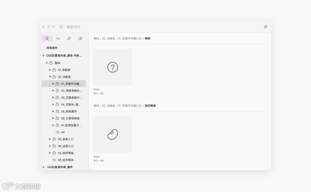 图标组件最关键的地方在于使用逻辑和图标规范。比如,我现在做的图标逻辑是:图标/类别/使用场景/具体名称/尺寸/不同状态,主要是按使用的频次来整理的。也可以有其他逻辑方式,以方便使用为准。