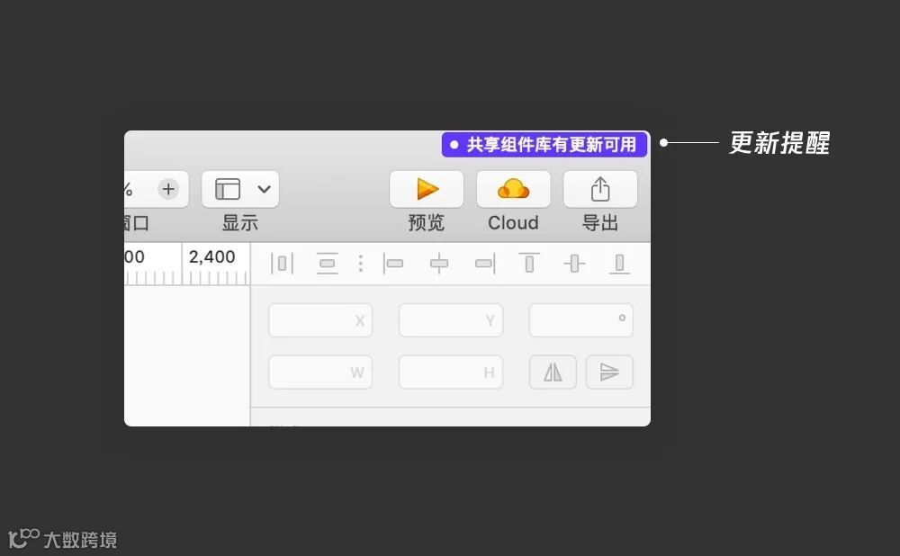 更新文件不用再靠人工在群里发通知,设计师也不需要去找文件,而是在sketch中会自动进行提醒。一旦有更新,会在右上角显示提醒消息,设计师只需要点击提醒,下载最新组件文件即可完成更新。