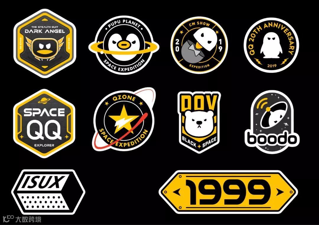 为了与高定限量太空鹅形成一系列,我们也为暗黑天使太空鹅设计了品牌logo贴纸,把太空鹅暗黑化的同时,贴纸也配套做出改变。贴纸设计使用暗黑太空鹅的黑黄配色为主色调,并且品牌logo的表情眼神更有态度,为品牌logo严肃的视觉带来玩味感和潮流感。每个品牌的设计方案除了有趣值得玩味外,同时贴合宇宙冷科技的风格。