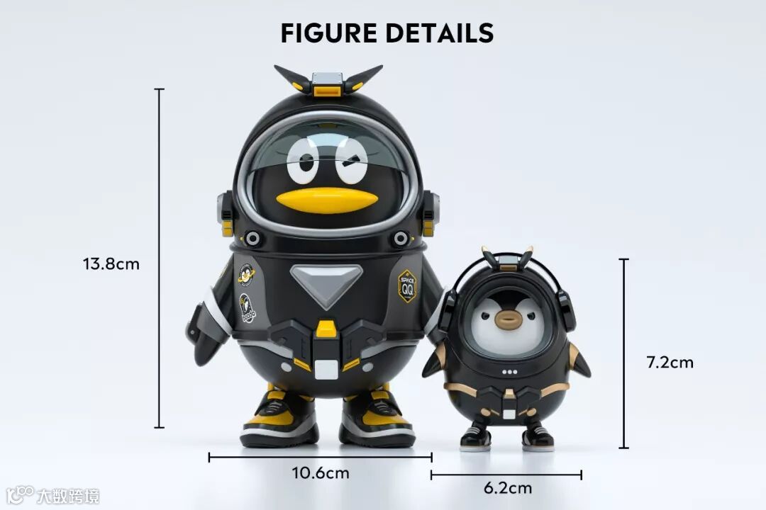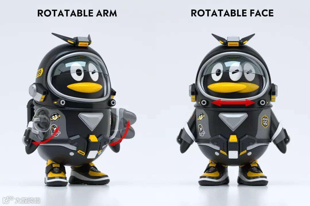 1.太空鹅全身暗黑化,黄色点缀细节;2.配件升级,新结构造型搭配;3.各个品牌的logo贴纸配合暗黑化升级;4.可换sneakers增加至6双;5.太空鞋全新设计;6.延续高定版太空鹅高度:13.8cm。