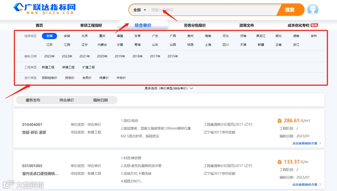 广联达指标网_建筑工程造价指标信息服务平台!(gldzb.com)