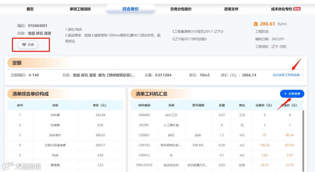 依次点击查看 定额组成——综合单价构成——清单工料机汇总(遇到喜欢的清单可以点击“收藏”哦)