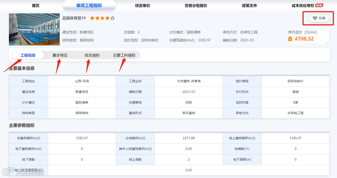 依次点击查看 工程信息——基本特征——成本指标——主要工料指标(遇到喜欢的指标可以点击“收藏”哦)