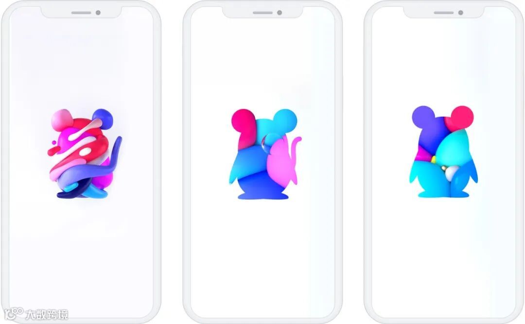 第二轮设计,我们测试可以象征鼠年的图形,做了把鼠的面具形状放到QQ的形状上的方案,或者用鼠形轮廓测试一些图形。然而由于闪屏应该代表整个服务,更普遍的形象才是首选。此外由于这一概念只是暂时性的,我们决定尝试其他不同的方案。