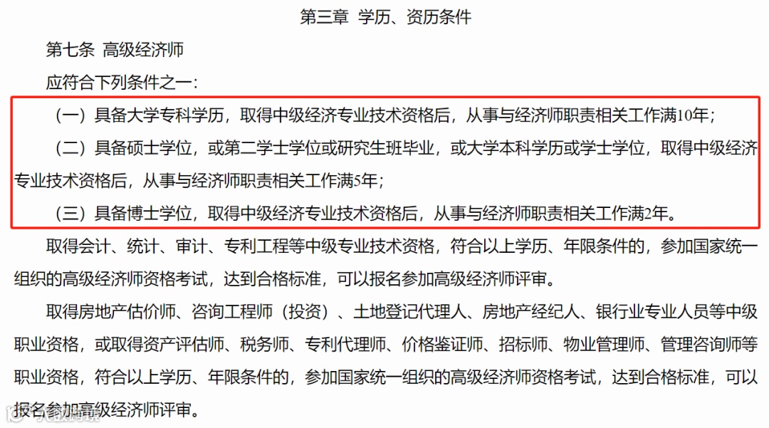 (三)具备博士学位,取得中级经济专业技术资格后,从事与经济师职责相关工作满2年。