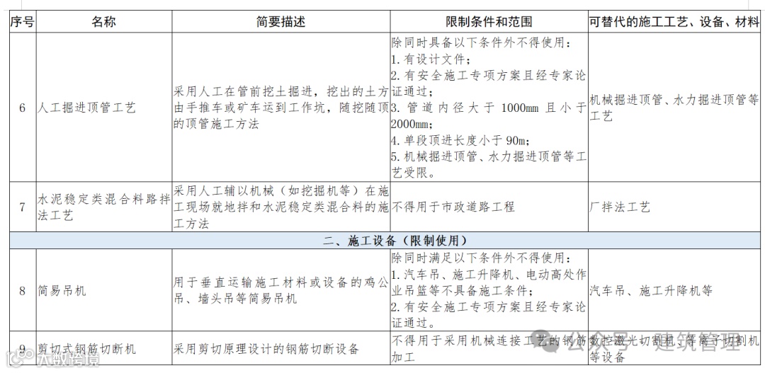 2022年9月15日后,全面停止在新开工项目中使用本《目录》所列禁止类施工工艺、设备和材料。