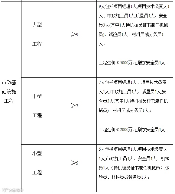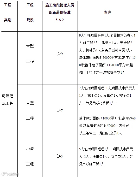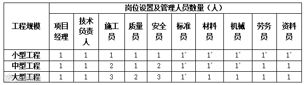 项目现场管理人员配备标准