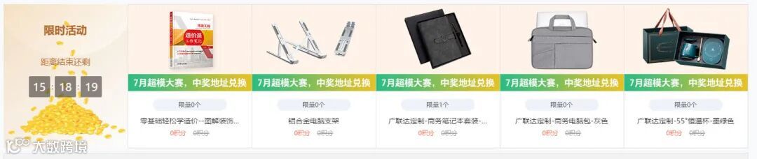 15天训练营,我们设置了各种学习福利,学习就能领积分,积分兑换精美礼品带回家。