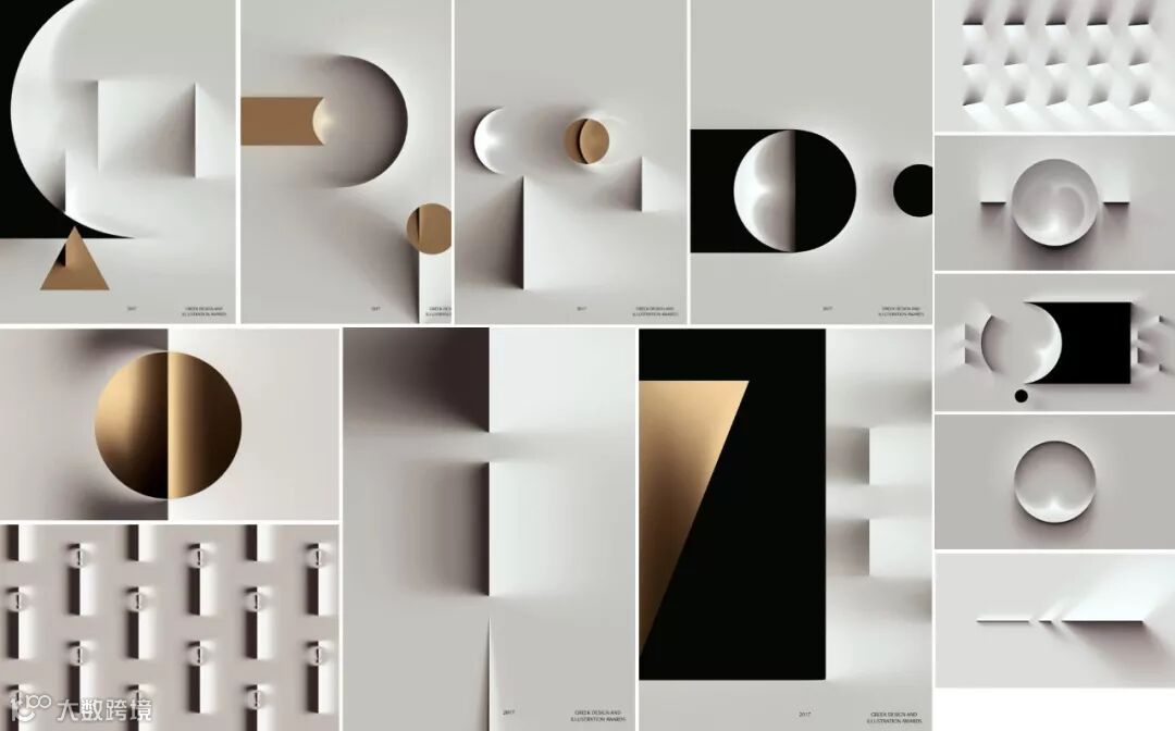通过色彩和微妙的材质组织了一个独特的光影世界,这种通过微妙质感组织空间感的手法是平面构成的一种进阶。