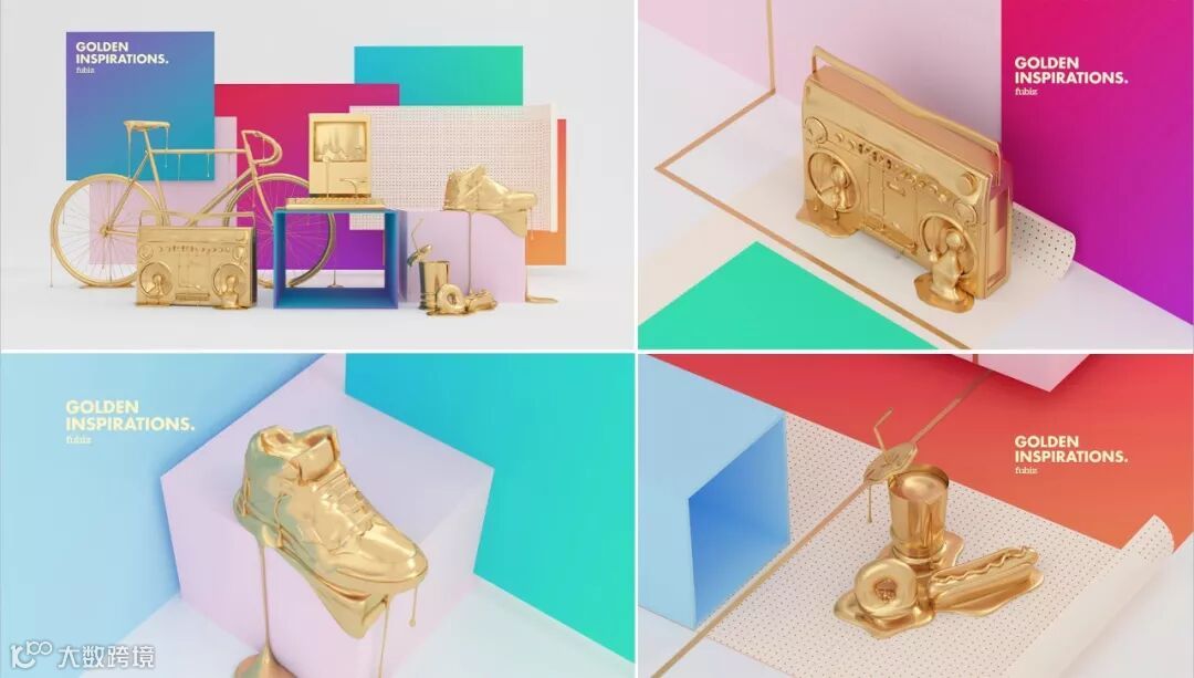 日常事物穿上金色的衣服,极致的金属材质异化与平面元素搭建的空间结合,模拟出来的真实感极具视觉冲击力。
