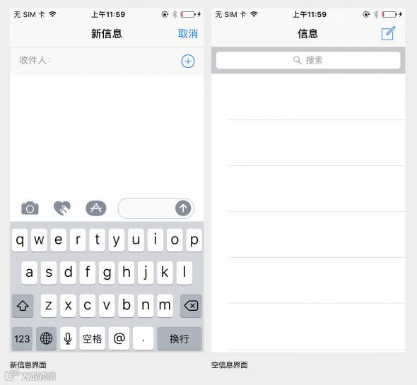 1.空信息时,点击信息图标,直接进入【新建信息】页面。