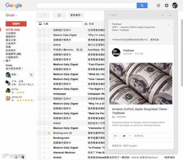 Google在通知详情中,通过上下箭头指示去到上一封通知,或下一封通知。