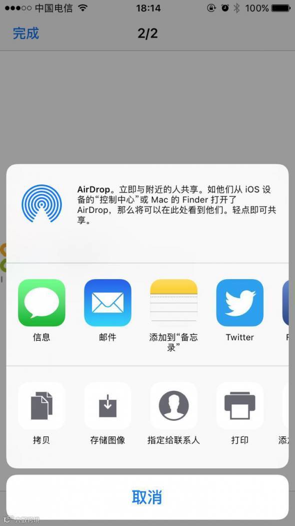 10.iOS的分享菜单中,下面一栏功能,给人的感觉是不可点击状态。