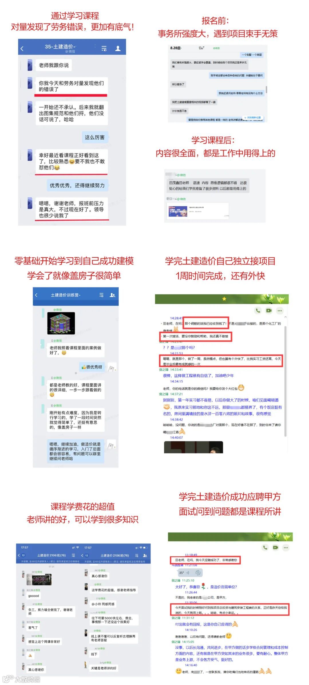 刚学完别墅的项目,你就知道了造价的整体工作流程,在学习中碰到新的问题还可以在群里问老师,和同学一起讨论互相学习,会进步飞速。