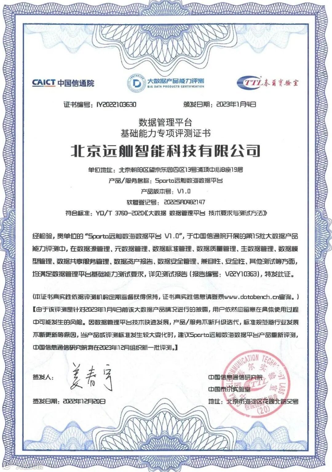 Spart远舢数海数据平台V2.0通过“可信大数据”数据管理平台基础能力评估评测