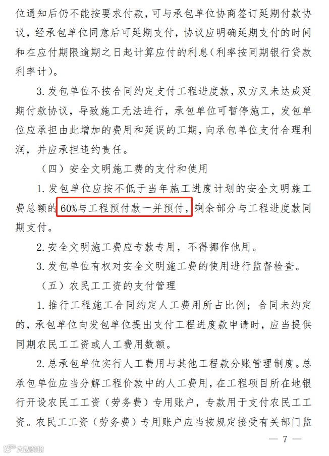 6、发承包双方不得因施工过程结算计价争议,不按合同约定的周期拨付工程款中的人工费用。