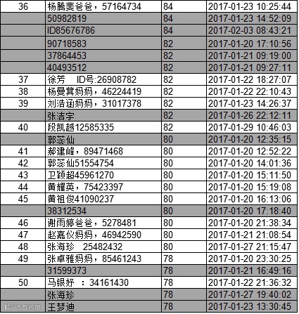 灰色部分为没有按照小e要求填写e学ID和昵称的用户,成绩按作废处理!
