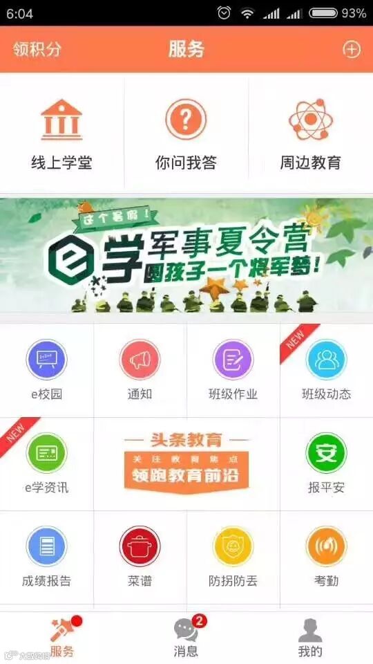 e学app更新内容如下1:增加消息中心模块,对班级动态,班级通知后家长评论后老师会收到相应的消息通知。班级作业老师回复后家长会收到消息通知。2:班级动态增加发送小视频功能。3:新增“圈子”模块功能。用户可关注圈子,创建话题。4:添加菜谱。苹果系统稍后更新