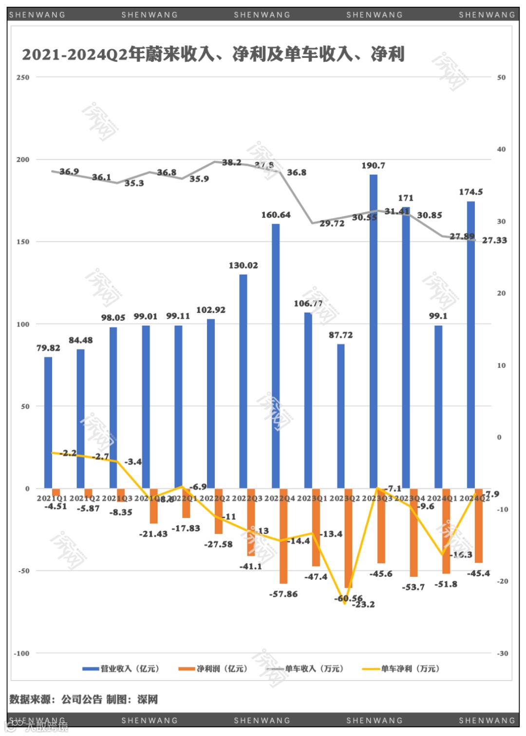 蔚来2021至2024年Q2财报核心数据 制图:深网
