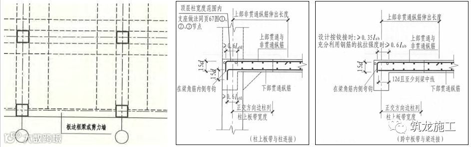 2、顶层中柱通常需要弯折,但如果顶层中柱纵筋在梁内满足直锚就不需要弯折。