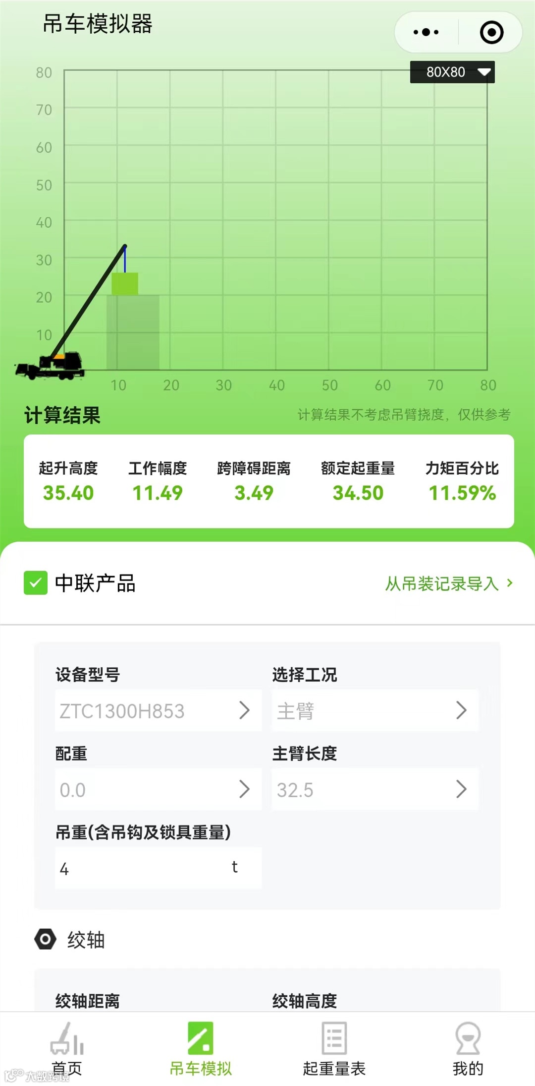4.起重量表查询:支持所有中联起重机工况载荷表查询。