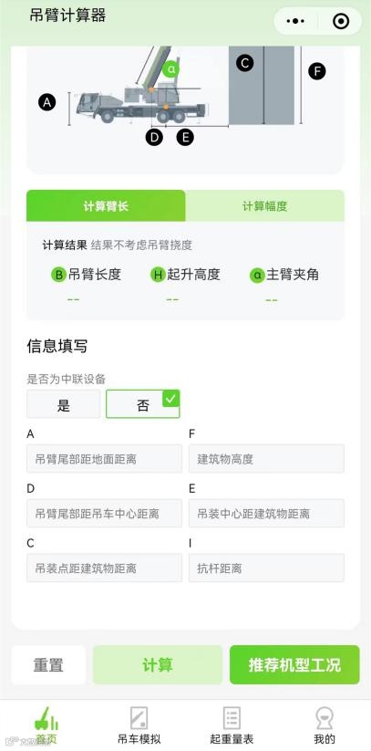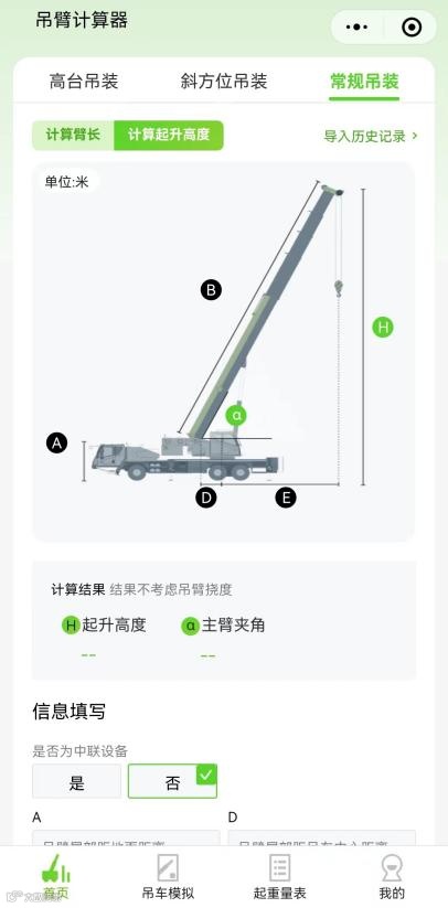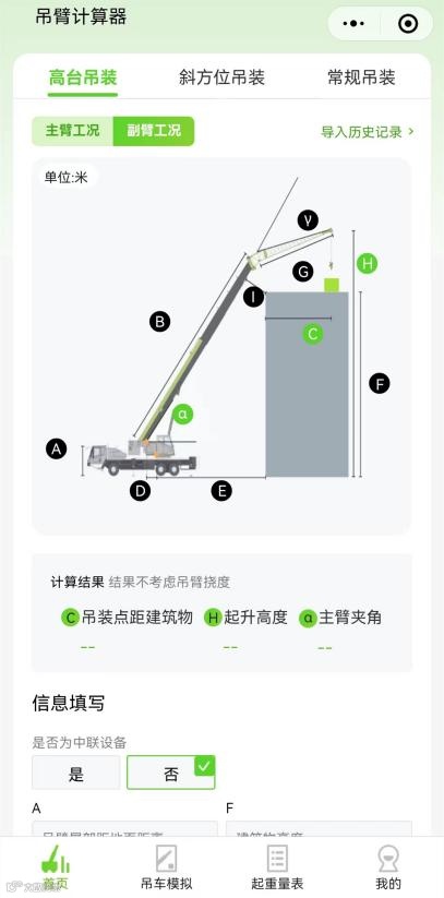 ▲ 高台吊装(主臂及副臂工况)小程序操作示例