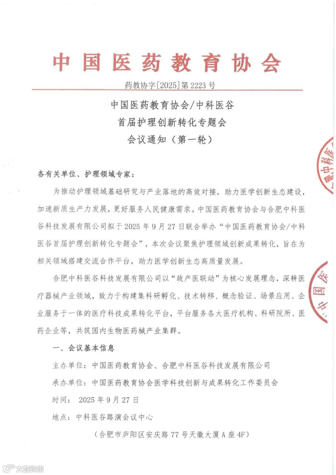 主办单位:中国医药教育协会、合肥中科医谷科技发展有限公司