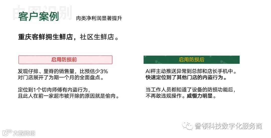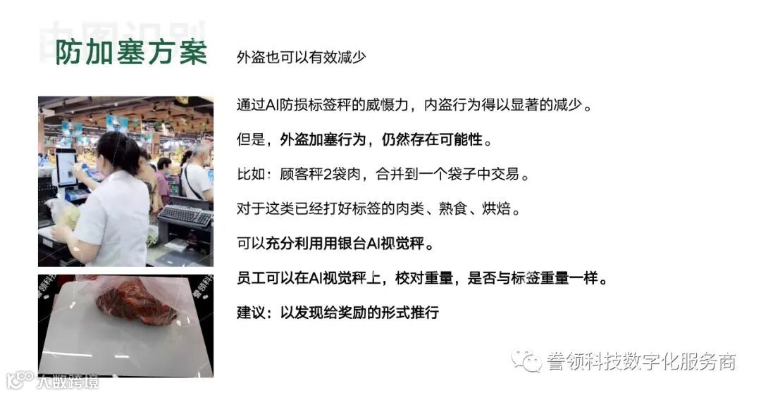 【✨独具慧眼!】大家可能不太了解,我们的AI防损方案是怎样的,请您听我如下说:您只需要把它放在收银台和有称重的地方,就可以识别每一个异常的行为,AI只要发现异常称重,就能实时推送到总部平台和店长手机中,可以预防每一个可能的风险。它能够准确地检测到蔬果/肉类/水产等生鲜品类内外盗行为,减少损耗,提高毛利。