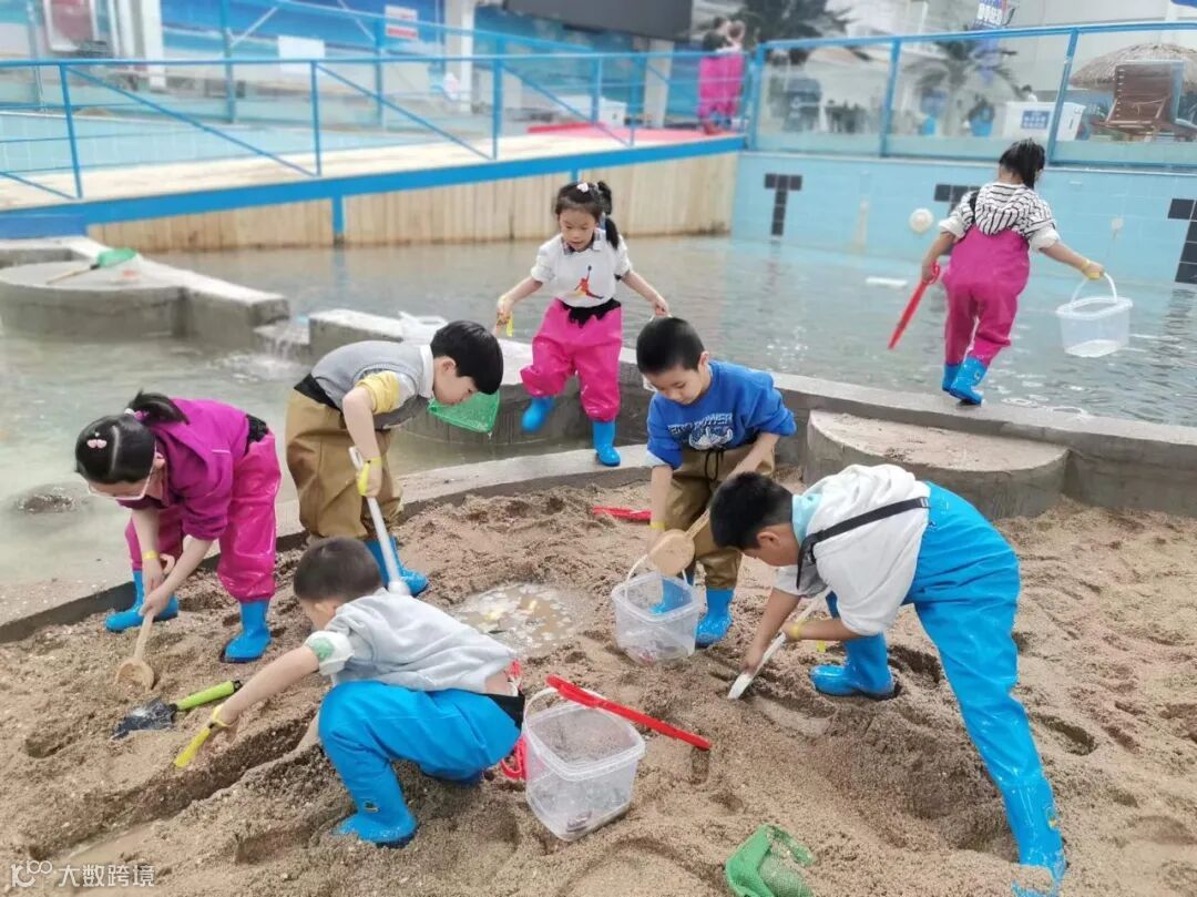 接着,小朋友们来到沙滩区,开始了寻宝之旅。每个孩子都变身为小小探险家,在沙滩上挖掘各种形状、颜色各异的贝壳。