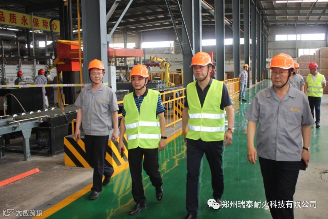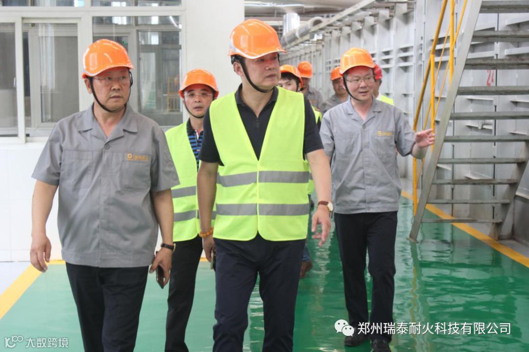会后,在公司总经理李泉侑等人陪同下深入公司生产车间、技术研发中心、质量检测中心等地进行了参观。期间,李总向客人详细介绍了公司在耐火材料技术研发、科技创新、智能化生产、质量管控等方面的情况。
