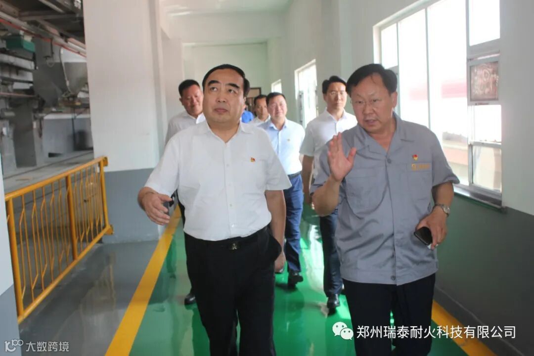 7月30日上午,郑州市委常委、政法委书记于东辉一行在新密市委书记蒿铁群、市长程洋的陪同下到郑州瑞泰耐火科技有限公司调研指导工作。
