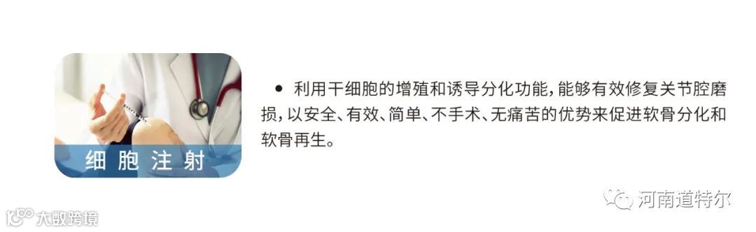 2012年,她接受了新的治疗方式即“自体干细胞注射”,干细胞具有强大的自我更新增殖能力及分化潜能,具有成软骨功能,能在体内微环境作用下主动迁移至受损部位进行修复重建。