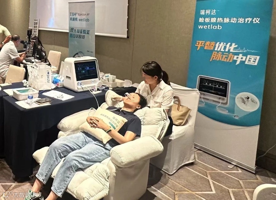 另一边,瑞柯达TM睑板腺热脉动治疗仪的体验区被围得水泄不通。这款针对睑板腺功能障碍的“解堵神器”,凭革命性的专利设计成为全场焦点。