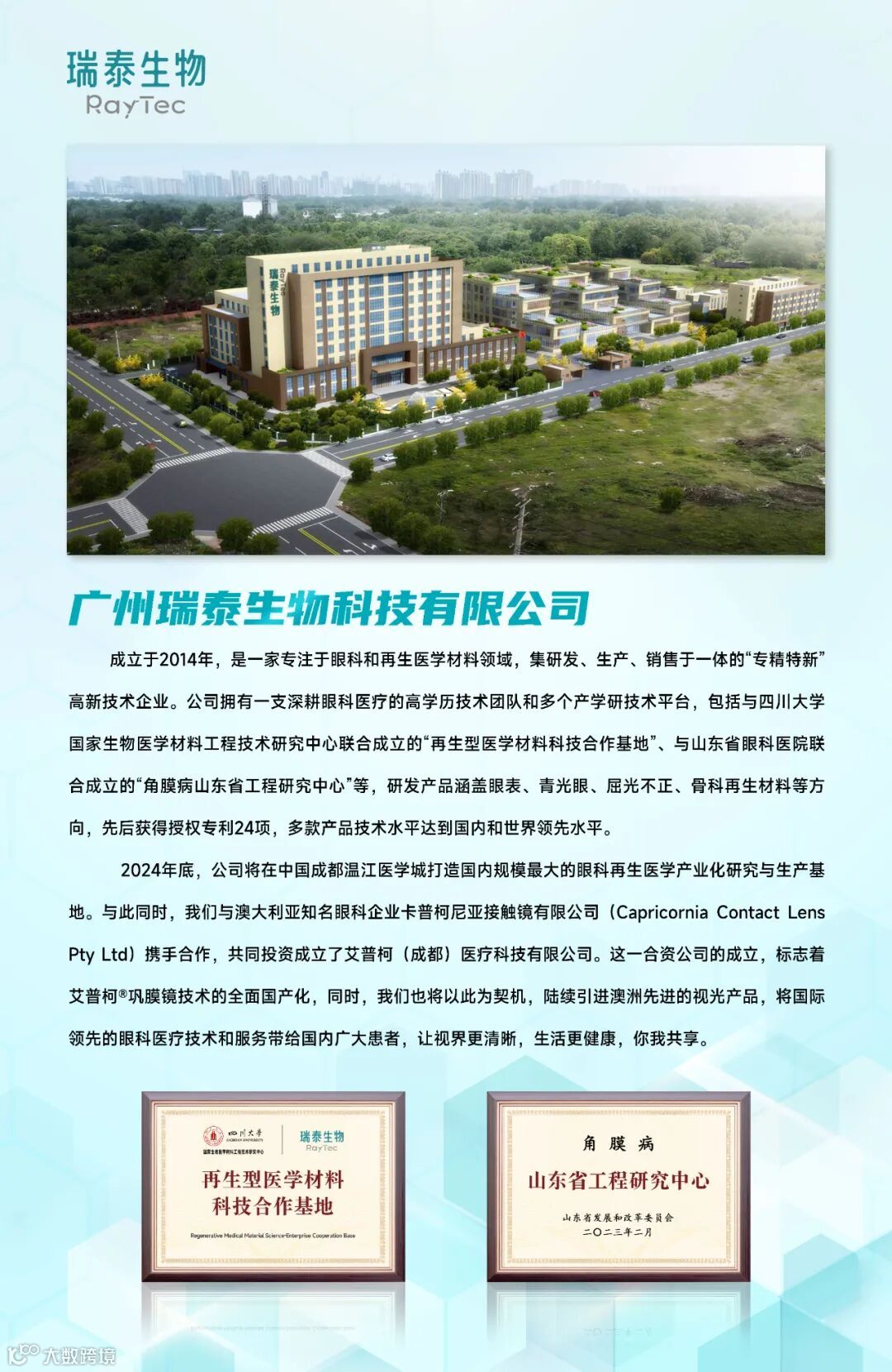 第二届国际泪膜与眼表学会中国分会(TFOS China)学术大会将于2024年8月23日-25日在杭州滨奥皇冠假日酒店召开。本次大会,瑞泰生物将携三大眼科产品【澳大利亚原装进口艾普柯®巩膜镜】、【全球首款巩膜镜专用护理仪艾普晶®】、【唯一3年超长有效期活性湿态生物羊膜瑞秀复®】参展,并将在大会期间24日14:00-17:00,25日9:00-12:00开展两场巩膜镜wetlab验配操作技术培训。
