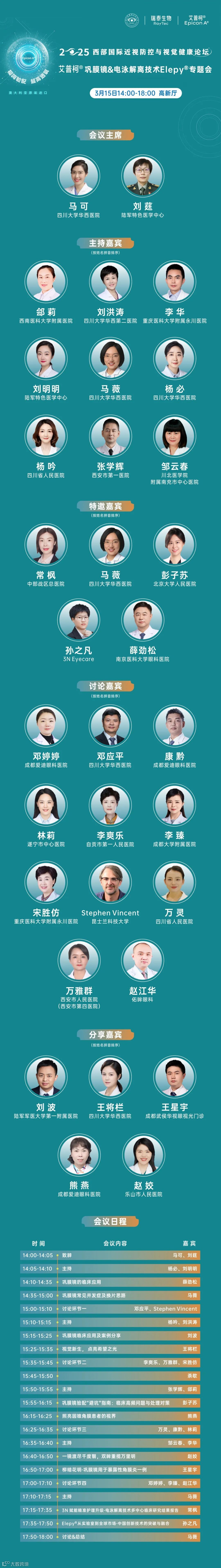 大会期间,3月15日14:00-18:00,我们还将在大会高新厅隆重举办【艾普柯®巩膜镜&电泳解离技术Elepy®专题会】,期待您的关注!