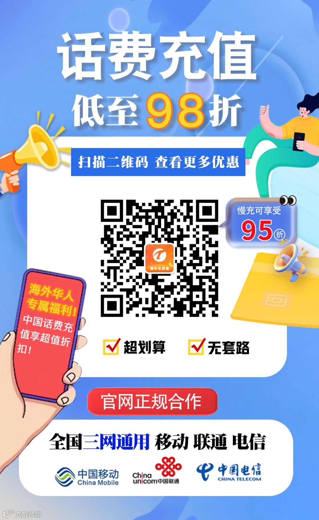 ✅ 中国话费充值低至 98 折 ,慢充更享 95 折