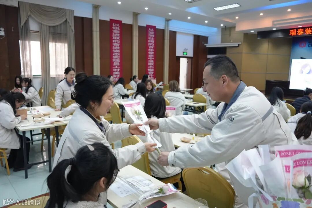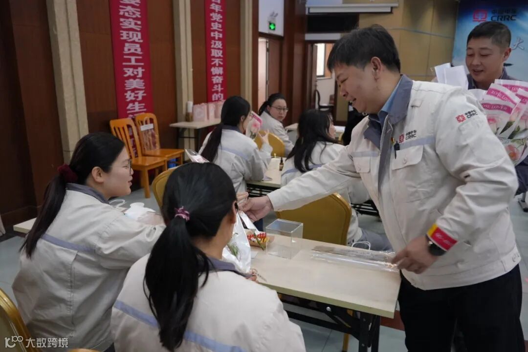 公司党委副书记、总经理于晓伟,副总经理、财务总监张硕分别向在场的每一位女员工献花,以此表达女神节最诚挚的祝福。