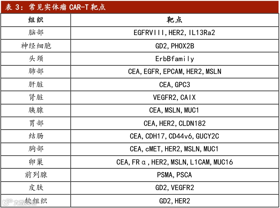 尽管Car-T 已经获批了以 B 细胞上 CD19 为靶点的 DLBCL、PMBCL 以及 ALL 在内三个适应症,同时,2019 年 12 月 13 日 Kite 向 FDA 递交其 KTE-X19 的生物制剂许可申请(BLA)(用于治疗复发或难治套细胞淋巴瘤 MCL),但市场上对 Car-T 主要的担忧在于其靶点较少(多集中于 CD19、BCMA)、适应症仍较少。下文将分享Car-T 在 CD19 以外的血液瘤靶点以及实体瘤方面的进展。
