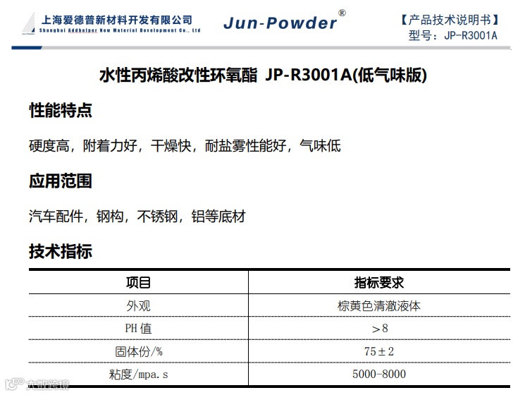 针对目前市场需求,爱德普新材推出两只水性改性自干环氧树脂: